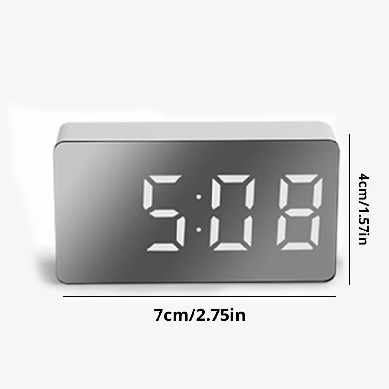 Upgrade your space with this sleek white LED mirror table clock. Its modern mirrored surface doubles as a stylish décor piece and a clear digital display. The bright LED numbers make it easy to read the time day or night. Equipped with a snooze function, it’s perfect for heavy sleepers or busy mornings. The built-in night light provides gentle illumination, ideal for bedside use. Powered by USB, it ensures reliable performance without frequent battery changes. Compact and lightweight, it fits seamlessly on desks, nightstands, or dressers. The minimalist design complements any room, from bedrooms to offices. You can easily adjust brightness and alarm settings for personalized comfort. Functional and fashionable, this LED mirror clock adds elegance and convenience to your daily routine.