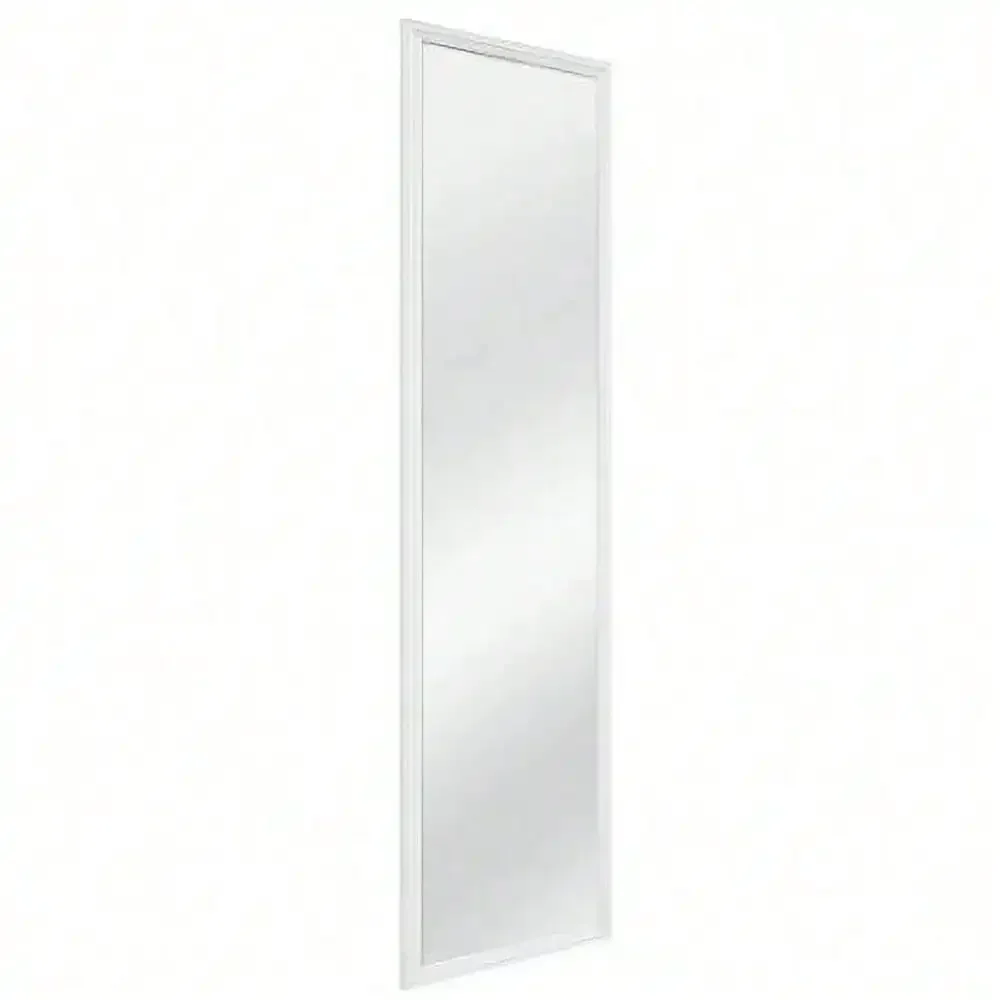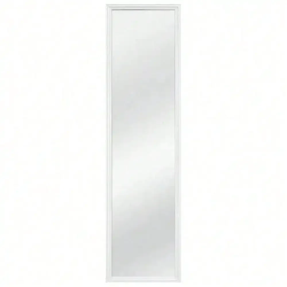Enhance your space with this elegant 13″ x 49″ white over door mirror. Designed to hang easily over most standard doors, it saves floor space while offering a full-length reflection. The sleek white frame adds a clean, modern touch to any room decor. Perfect for bedrooms, closets, bathrooms, or dorm rooms, it provides both style and practicality. The clear glass delivers a distortion-free reflection for daily grooming or outfit checks. Its lightweight yet sturdy design ensures secure placement without damaging your door. No drilling or hardware is required—just hang and enjoy instant functionality. The mirror’s slim profile makes it ideal for smaller living spaces. Crafted with durable materials, it offers long-lasting use and timeless appeal. Add brightness and depth to any room with this versatile over door mirror.